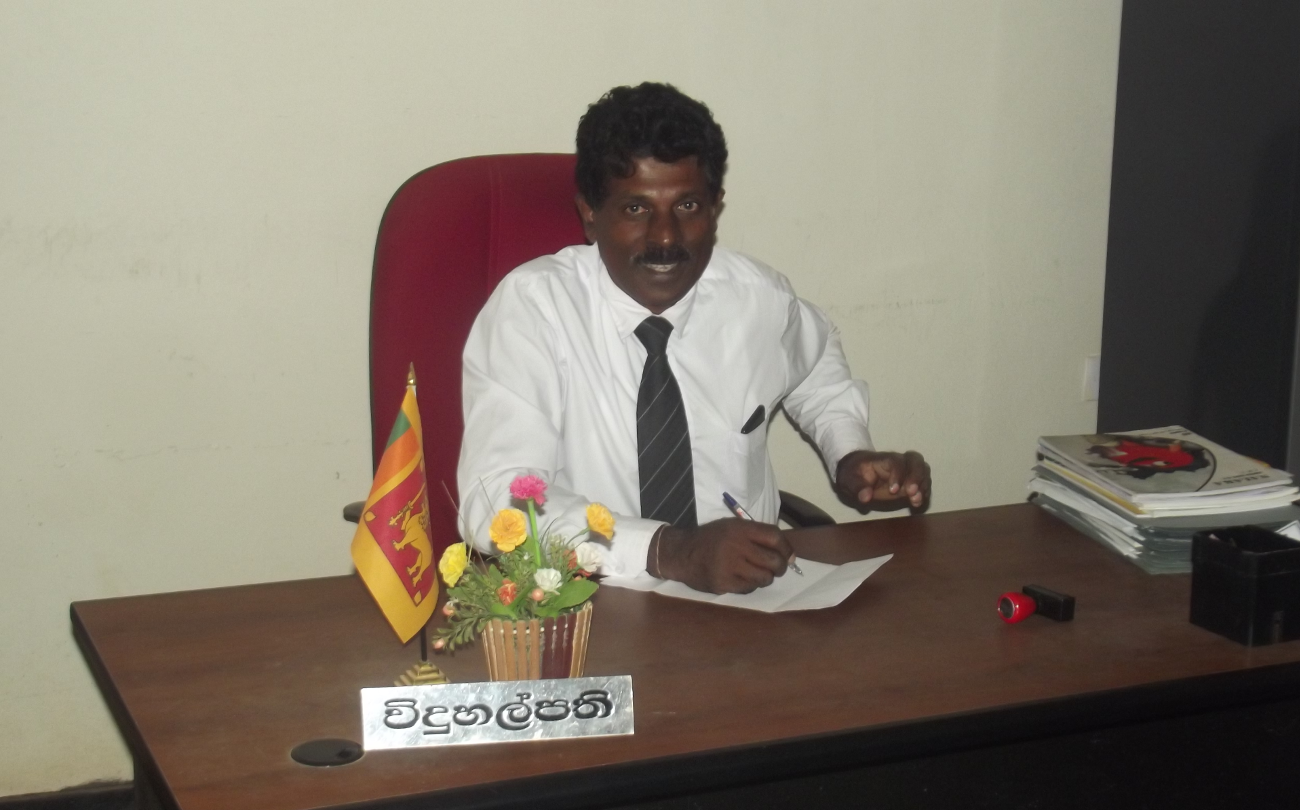 විද්යාවේදී උපාධියක් සහිත දක්ෂ ගණිත විෂය ගුරුභවතෙකු ලෙස සේවය කර ඇති මෙතුමා මෙම විද්යාලයේ විදුහල්පතිවරයෙකු ලෙස වර්තමානයේ සේවය කරනු ලබන අතර මෙම කාලය තුල පළාත් ජාතික පාසලක් ලෙස මෙම විද්යාලය තෝරාගැනීමටත් විද්යාලයට ටැබ් පරිගණක 49 ක් , පොටෝකොපි යන්ත්ර , අන්තර්ජාල පහසුකම් ලබාගැනීමටත් මෙන්ම විද්යාලයේ සිසු දරුවන්ගේ උන්නතිය සදහා විවිධ වැඩසටහන් ක්රියාත්මක කරමින් සේවය කරනු ලබන්නේය. මෙතුමා මාතර නගර සීමාවේ පදිංචි අතර එහි සිට මෙම ප්රදේශයට සේවය සදහා කිලෝමීටර් 30 ක් පමණ දුරක් ගෙවාගෙන පැමිණේ. |